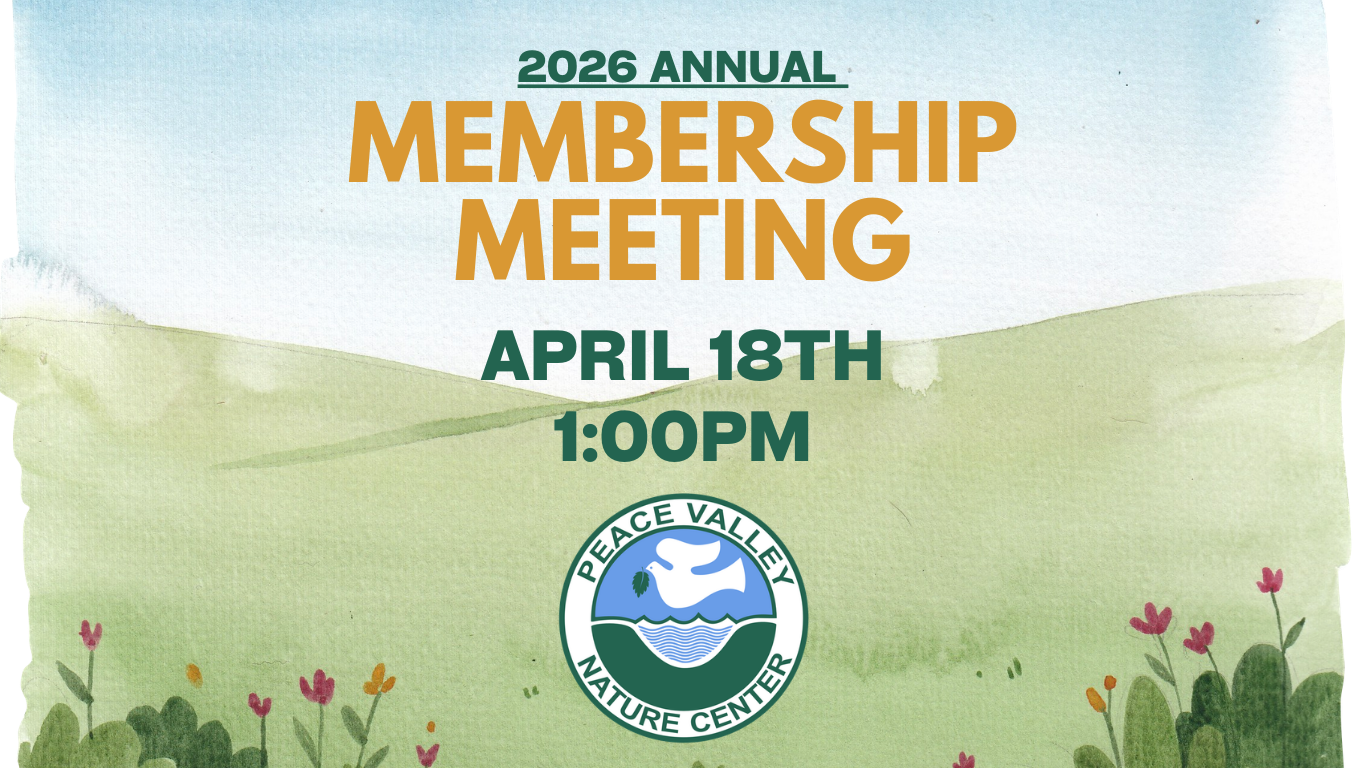 Members are warmly invited to attend our Annual Membership Meeting, April 18th 1pm- 4pm and to spend time connecting with the people who help make Peace Valley Nature Center thrive. Meet our staff and board members, celebrate the contributions of our dedicated volunteers, and hear about the exciting work happening at the Nature Center. Light refreshments will be served.