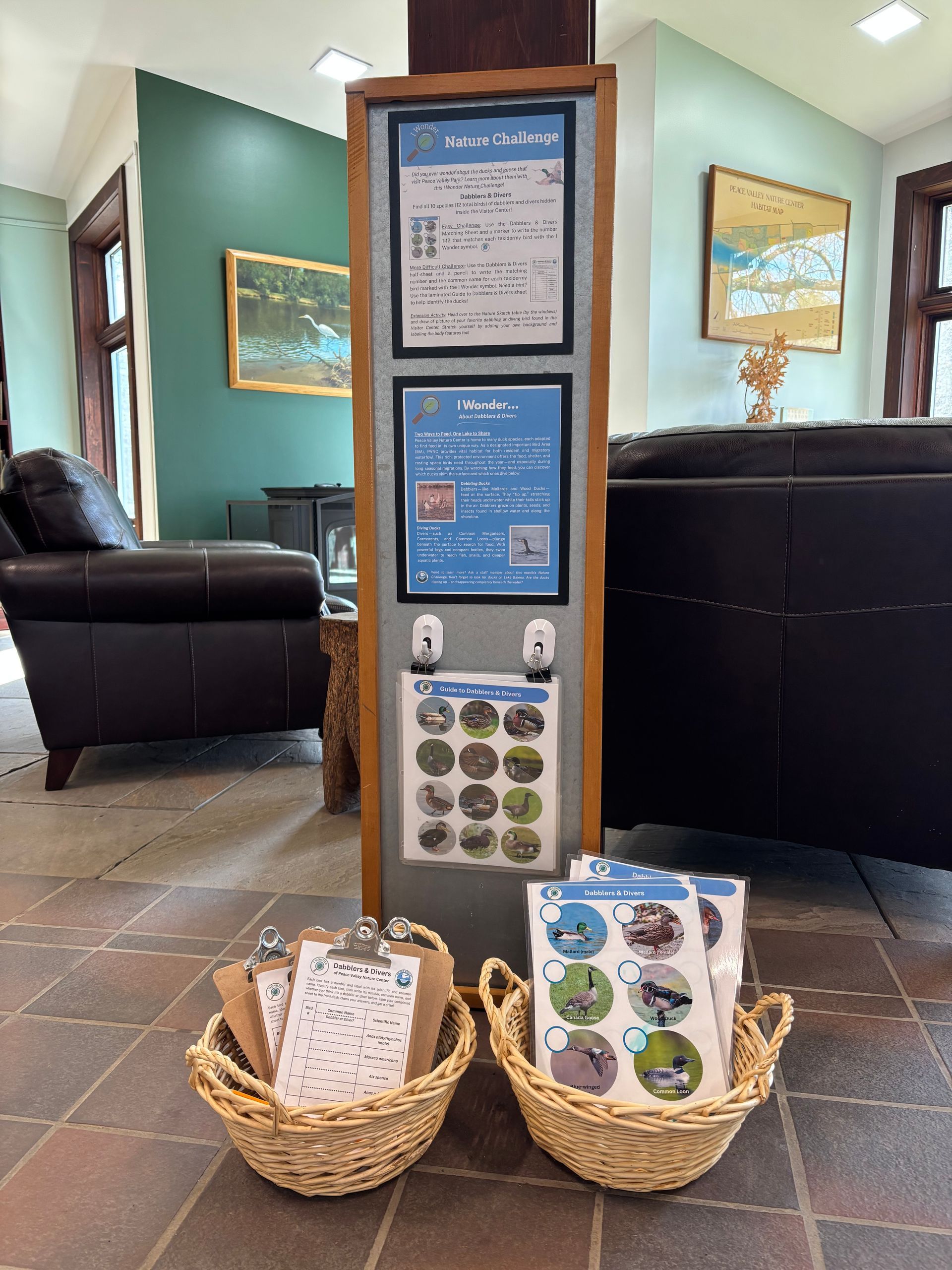 Looking for a fun indoor adventure? Visit the Visitor Center and try our new "I Wonder" Nature Challenge! This interactive experience encourages you to follow clues and uncover answers about the birds featured in our taxidermy displays. Topics will change seasonally.